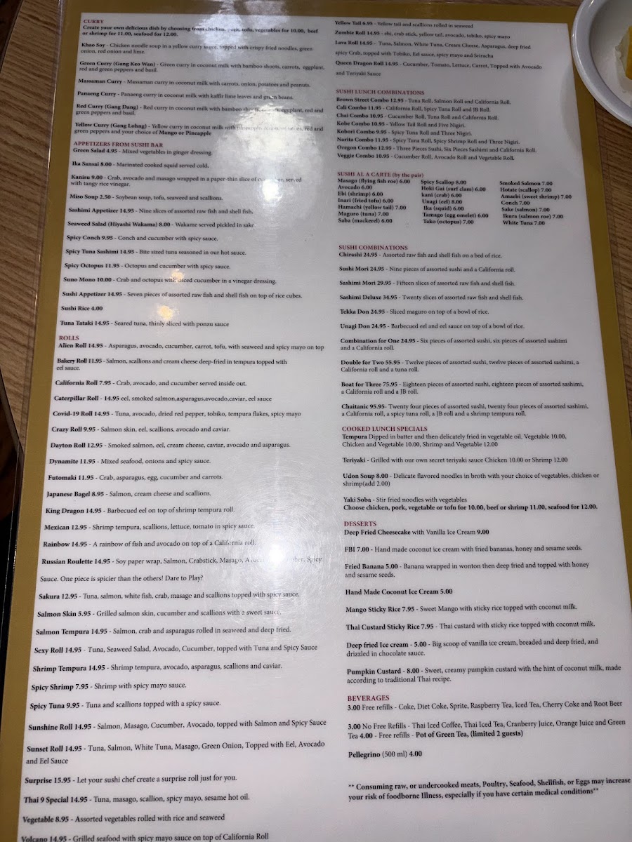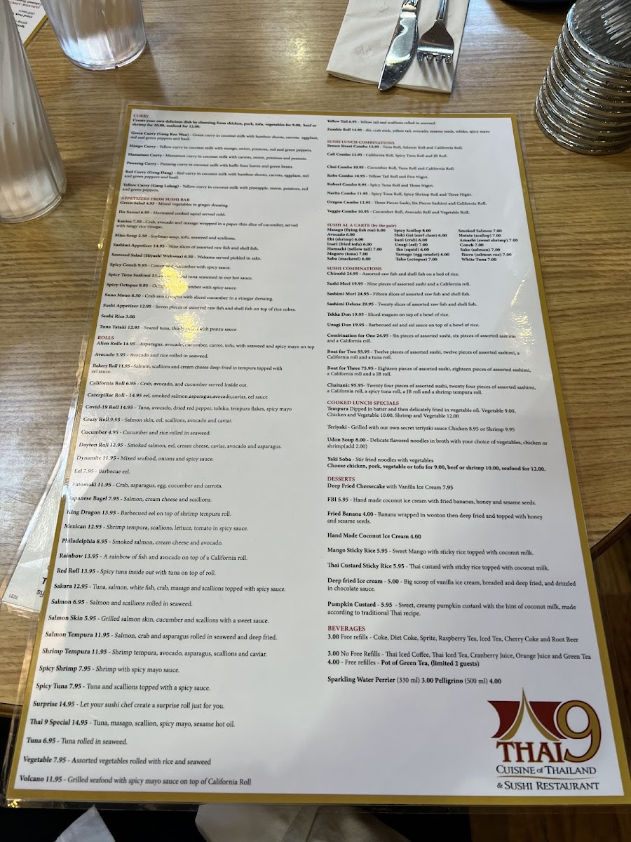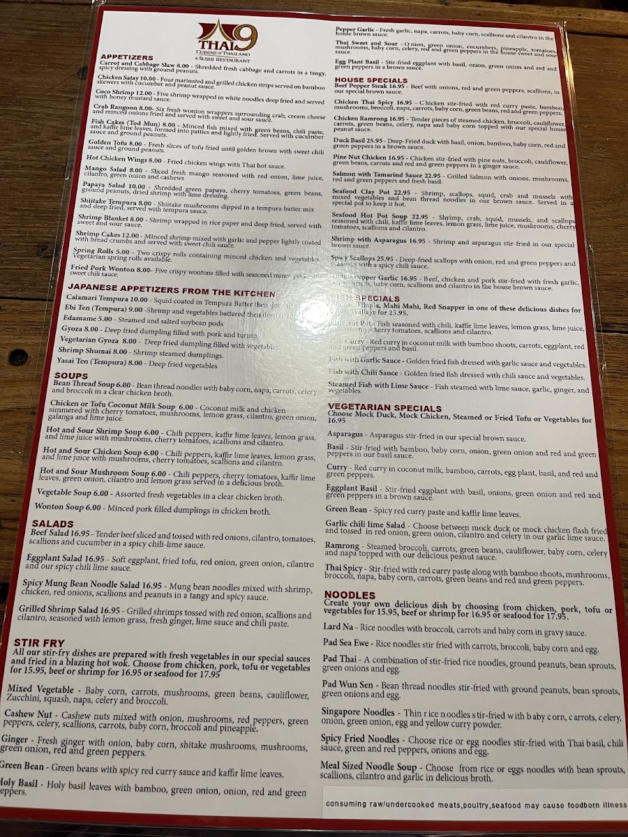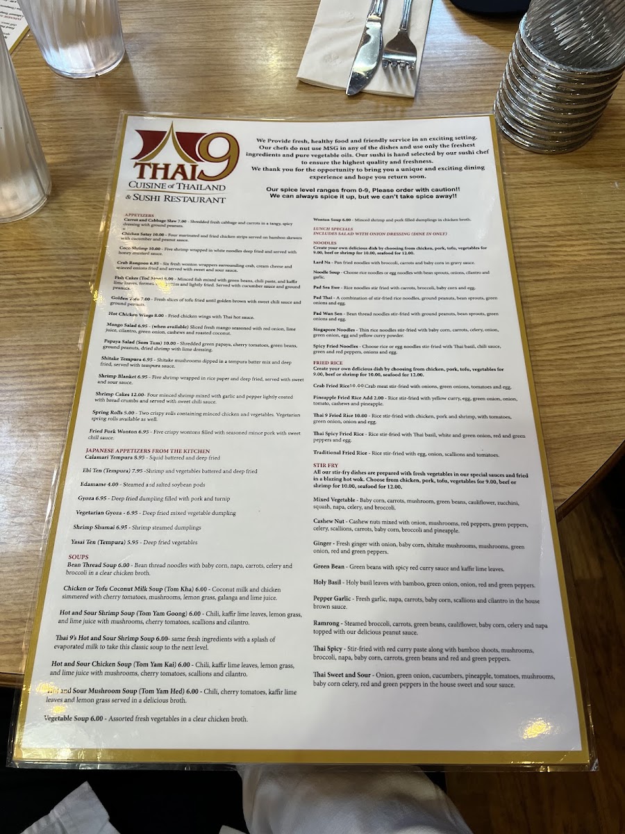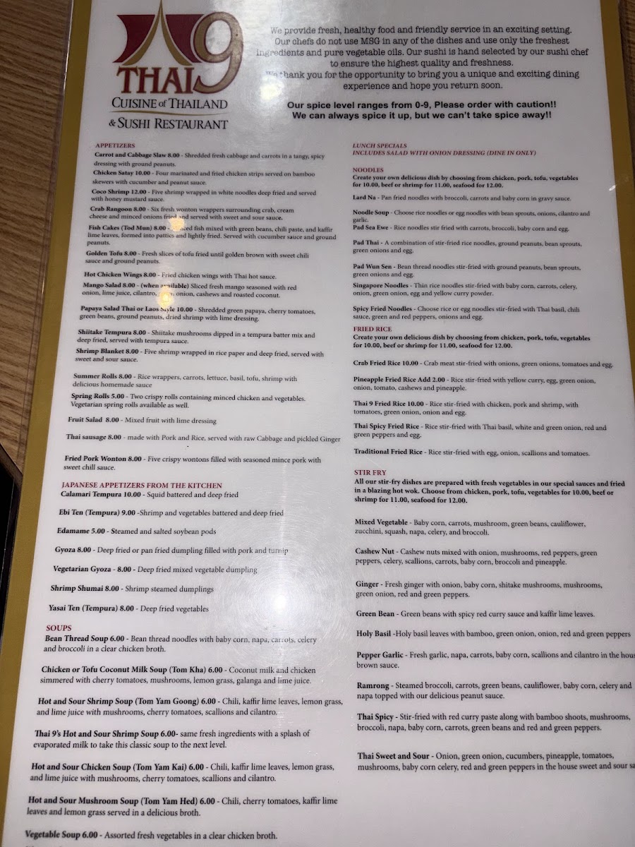 Thai 9 Menu