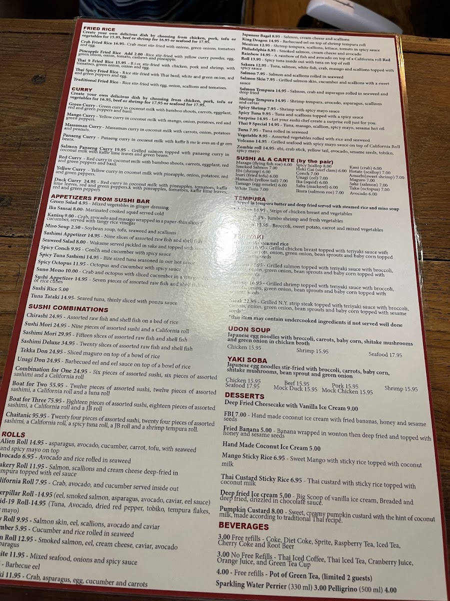 The menu at Thai 9 presents a thoughtful blend of classic Thai dishes and a variety of sushi options, offering something for many tastes and occasions. The style is approachable and versatile—perfect for casual lunches, relaxed dinners, or sharing plates with friends and family in a welcoming atmosphere.